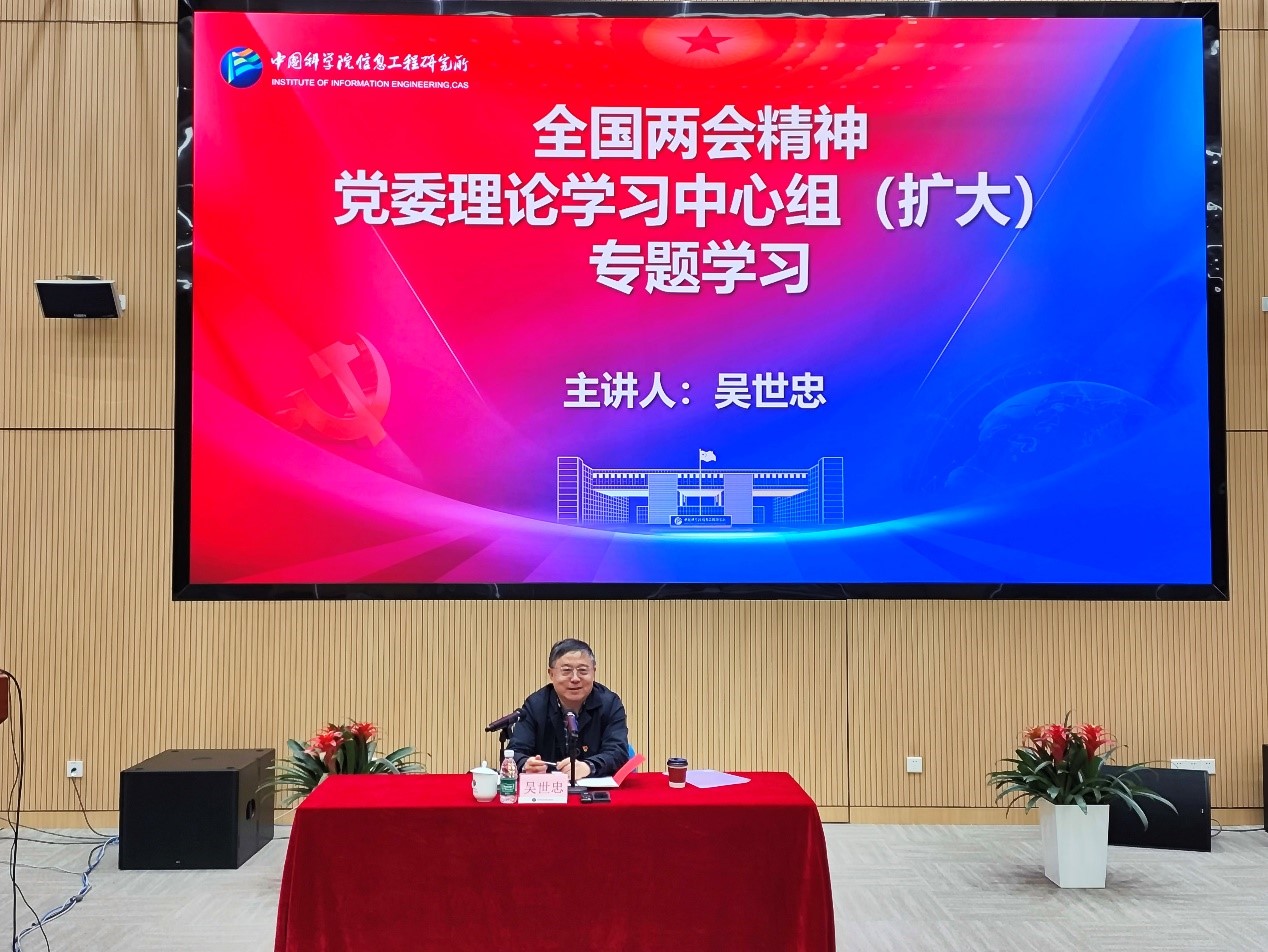 3月27日下午,中國科學院信息工程研究所召開理論學習中心組(擴大)集體學習會,傳達學習習近平總書記在全國兩會期間發(fā)表的重要講話和全國兩會精神。第十四屆全國政協(xié)委員、中國工程院院士吳世忠作專題報告,研究所黨委委員、紀委委員、技術副總師、科技部門及職能部門中層領導干部、黨總支及直屬支部書記、黨支部書記等近70人參加會議。會議由黨委副書記、所長郭莉主持。
