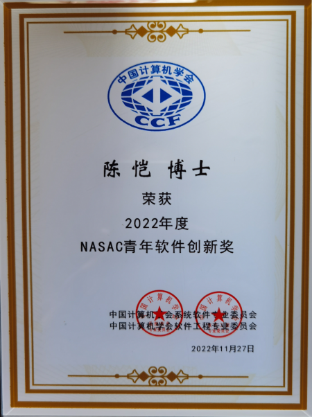 【喜報】陳愷研究員榮獲2022年NASAC青年軟件創新獎