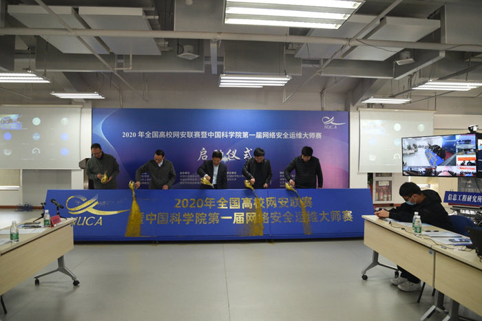 王樹志、黃澄清、孟丹分別代表指導單位和主辦單位致辭。各位嘉賓共同啟動本次大賽,2020年全國高校網安聯賽暨中國科學院第一屆網絡安全運維大師賽(X-NUCA’2020)正式拉開帷幕!